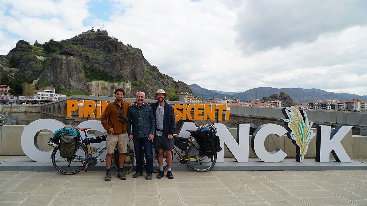 Bisikletleri ile İngiltere'den yola çıkan ve Asya'yı gezdikten sonra Avustralya'ya gitmeyi hedefleyen Benji Ruiz Cravinho ve Max Cleverley de Çalışkan'ın iş yerinde mola verdi.