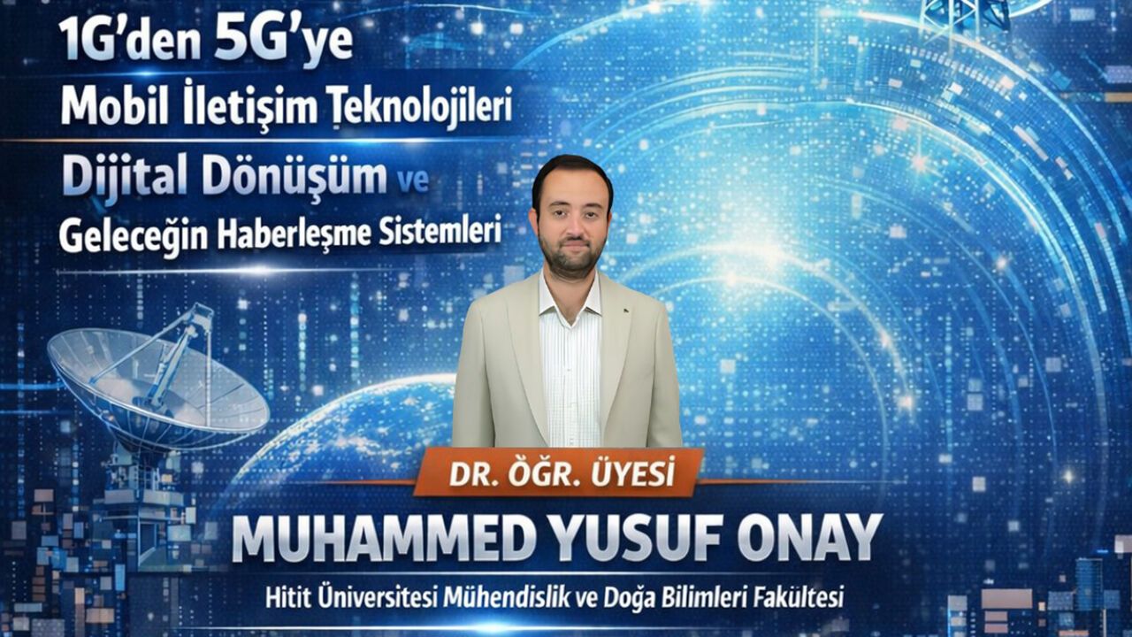 Hitit Üniversitesi Mühendislik ve Doğa Bilimleri Fakültesi Öğretim Üyesi Dr. Öğr. Üyesi Muhammed Yusuf Onay’ın konuşmacı olarak katılacağı söyleşide, mobil iletişim teknolojilerinin 1G’den 5G’ye uzanan gelişimi, dijital dönüşümün yaşam üzerindeki etkileri ve gelecekteki haberleşme sistemleri ele alınacak.