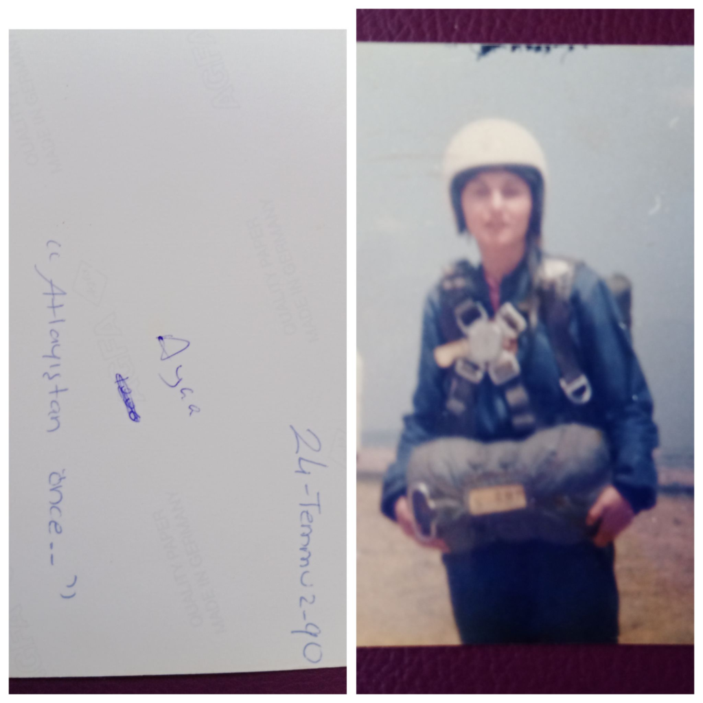Pendik'te o yıl bir milli bayramda (23 Nisan veya 19 Mayıs 1990) paraşütçülerin atladığını gördüğüm anda, paraşütle atlamaya karar verdim. Bu, kelimelerle anlatamayacağım, sıra dışı, muhteşem deneyimi yaşamak o kısa dönem için bir tutkuya dönüşmüştü. Türk Hava Kurumu ilanları beni THK Şubesi'ne götürdü ve hemen kaydoldum. Uyarılara kulak asmadım...