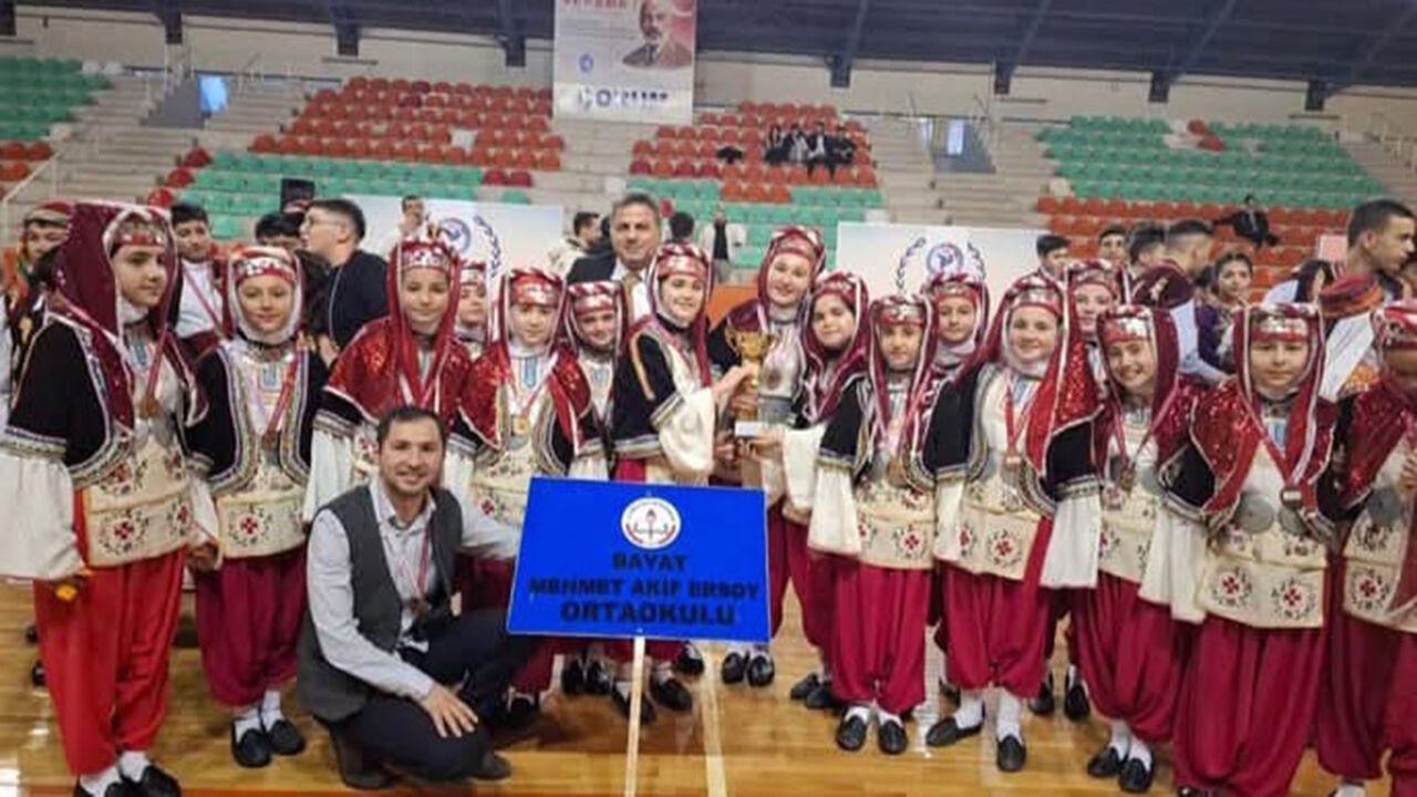 Yıldızlar Geleneksel Düzenlemeli Dal'da Bayat Mehmet Akif Ersoy Ortaokulu birinci, Gençler Geleneksel Düzenlemesiz Dal'da da Eti Anadolu Lisesi birinci oldular.