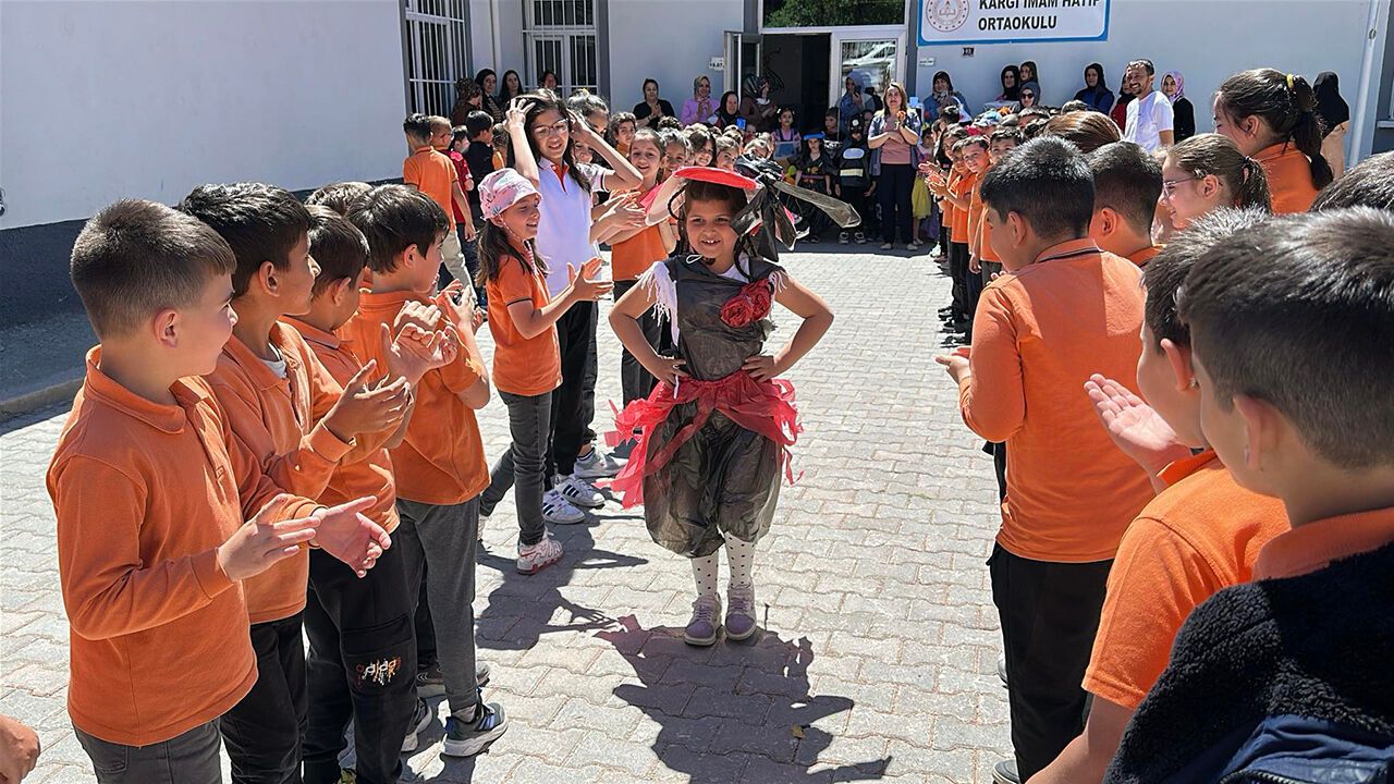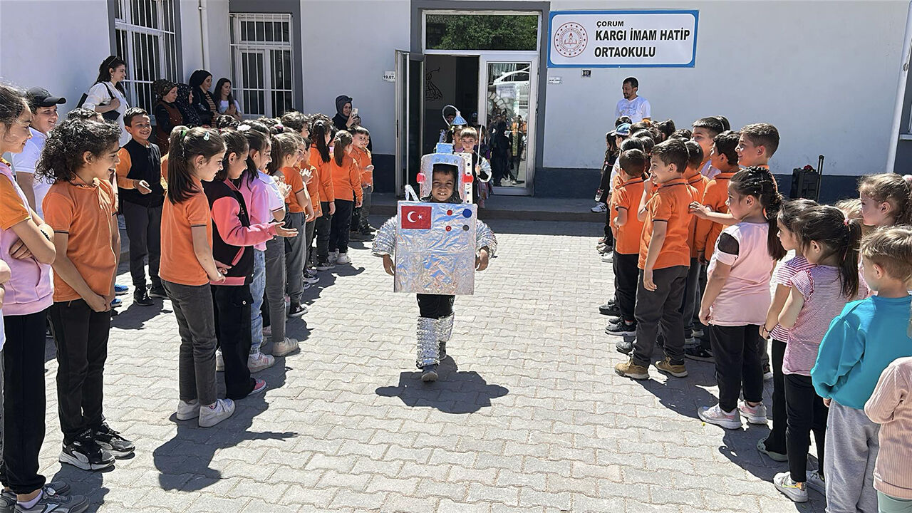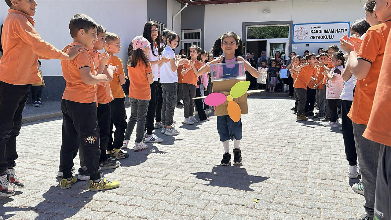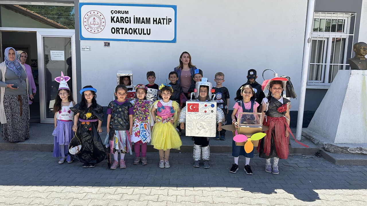 Çorum'un Kargı ilçesinde birinci sınıf öğrencileri, atıl malzemeleri dönüştürerek ürettikleri kıyafetleri defile ile sergiledi. Cumhuriyet İlkokulunda öğrencilerin çevre bilincini artırmak amacıyla düzenlenen etkinlik öncesi öğrenciler, atık malzemeleri kullanarak hayallerindeki elbise ve eşyaları tasarladı.