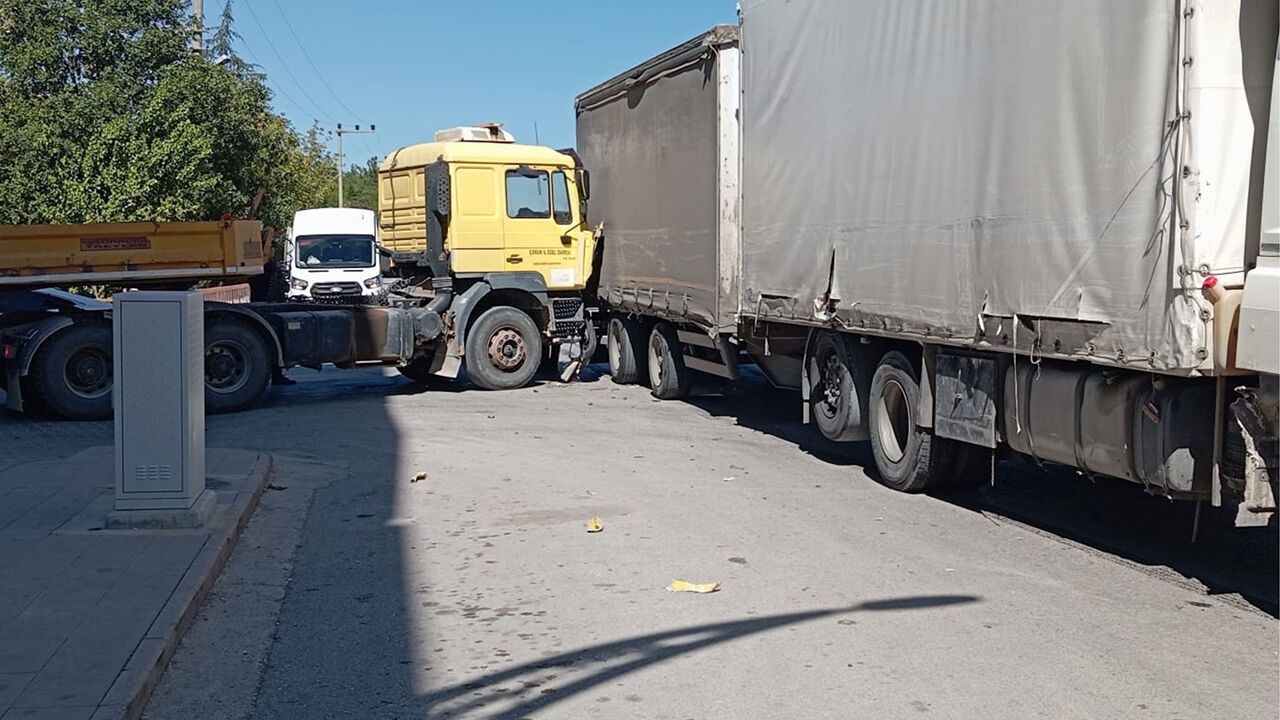 Edinilen bilgilere göre, Can Sokak’tan caddeye çıkmaya çalışan iş makinesi yüklü tır ile seyir halindeki çift dorse tırın çarpışması sonucu araçlarda maddi hasar oluştu. Kazada yaralanan olmazken, ihbar üzerine olay yerine trafik polis ekipleri sevk edildi. Kazayla ilgili inceleme başlatıldı.
